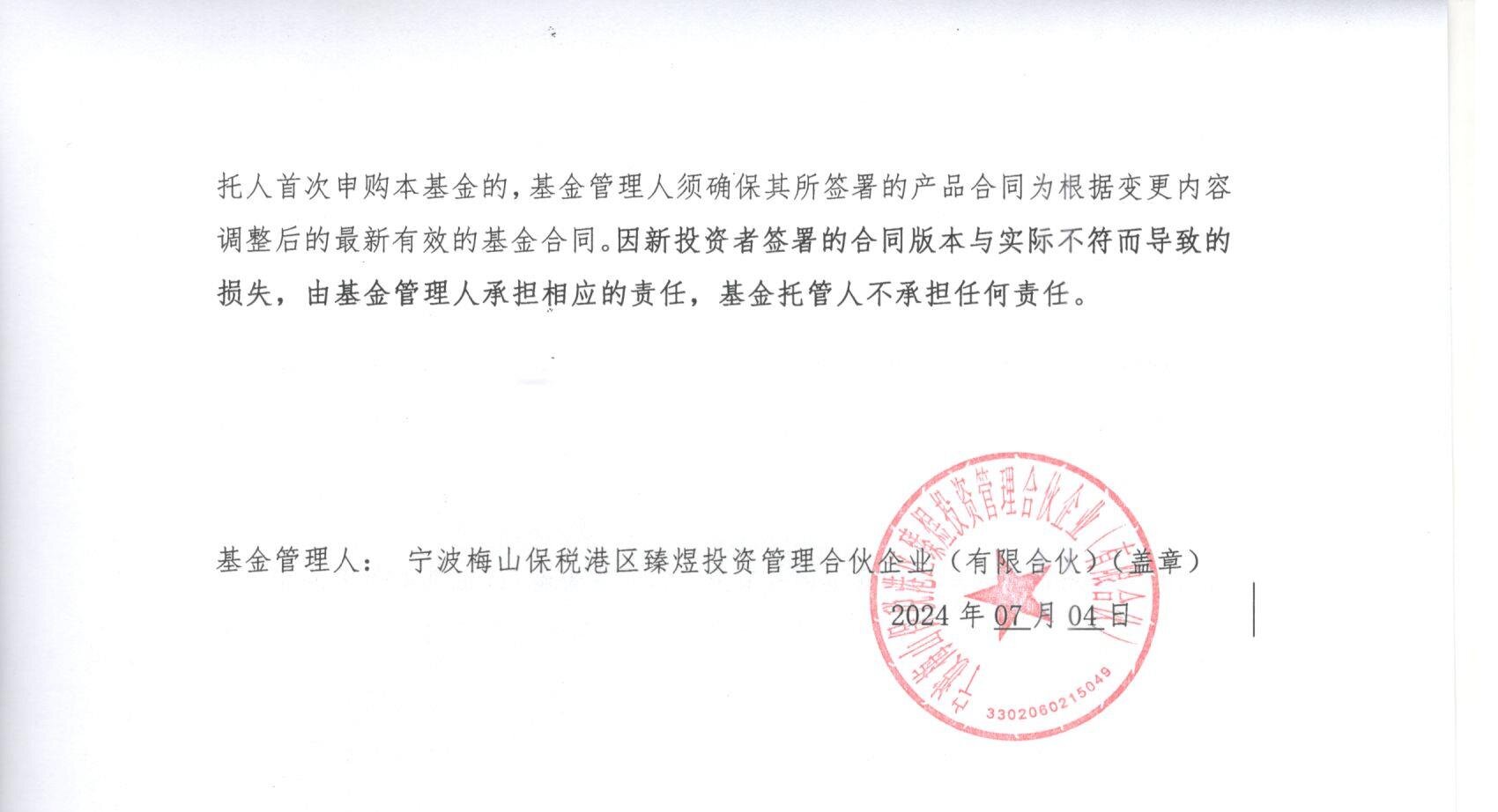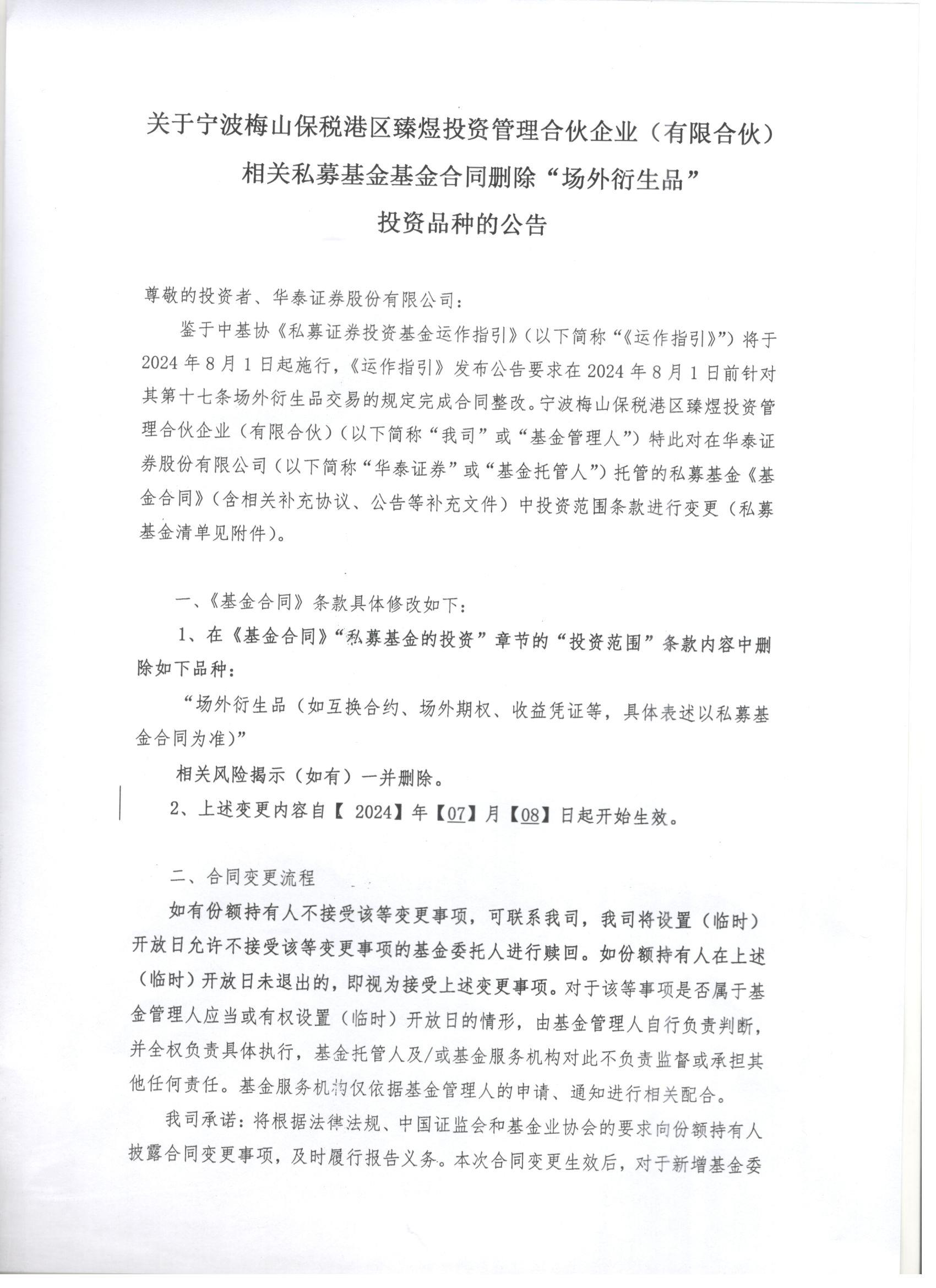 关于臻煜核心价值3号私募证券投资基金基金合同删除“场外衍生品”投资品种的公告